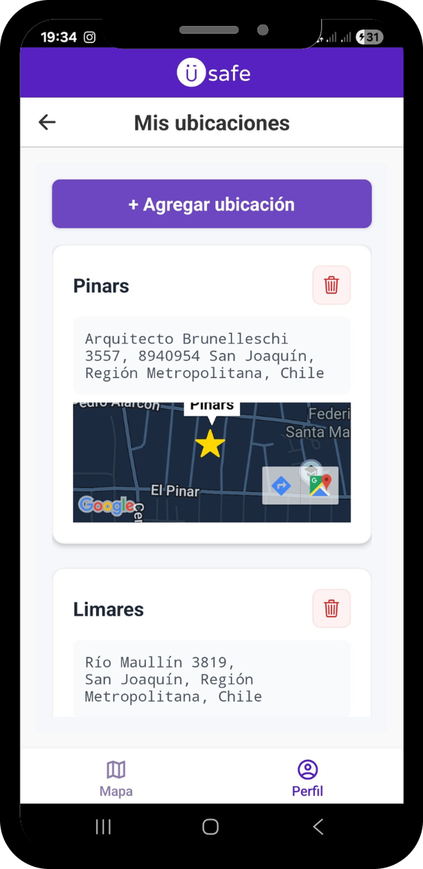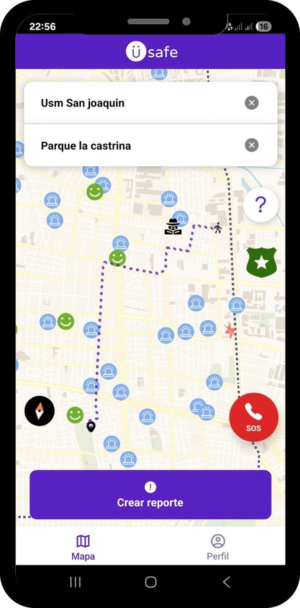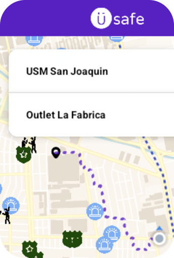 ÜSAFE es una aplicación móvil que aborda la creciente inseguridad en Santiago, ofreciendo a las personas la opción de generar rutas personalizables que sean más seguras para realizar sus trayectos en la calle.